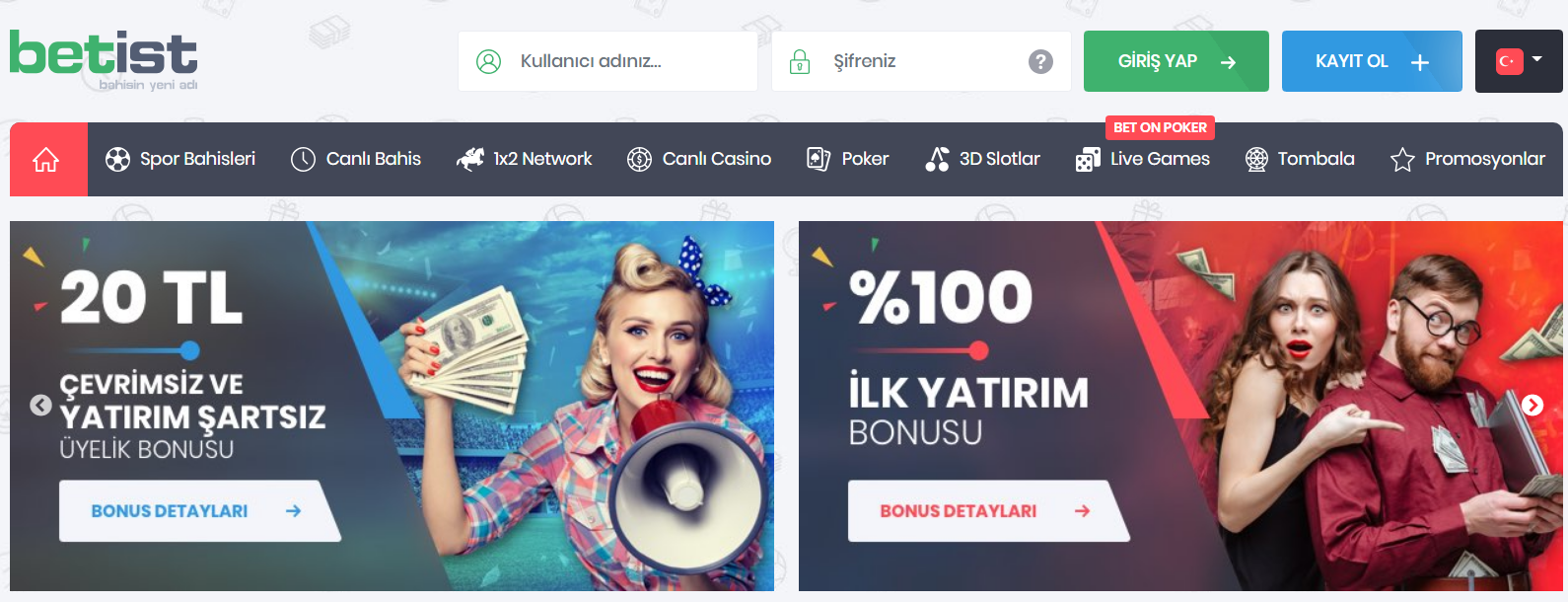 Betist ilk üyelik bonusu, ilk yatırımlarını ikiye katlamak isteyen oyuncular için harika bir seçimdir. Bu kampanyadan yararlanmak istiyorsanız, bahis sitesine en az 100 TL ödemeniz gerekir. Bahis yaptıktan sonra, bahis kazananlarla ilişkilendirilen Betist doğrudan destek hattı aracılığı ile her üyesine direkt bu bonusu verecektir. Bonus, yalnızca bahis bölümleri için geçerli olan bir bonus değildir. Betist'in tüm üyelerine hoş geldin bonusu verilir ve bu bonus, spor bahislerine, gerçek zamanlı bahislere, casinolara, gerçek zamanlı casinolara ve pokerlere dönüştürülebilir. Betist'in hoşgeldin bonusu sınırsız kazanç elde etmek için kullanılabilir. Bu konuda herhangi bir kısıtlama yoktur. Bildiğiniz gibi, bahis sitelerine bahis koymayı seçebileceğiniz en güvenilir ödeme yöntemlerinden biri mobil hesap kullanmaktır. Cepbank’a Betist yasa dışı bahis sitesinden para yatırırsanız, yatırımınıza ek olarak % 20 bonus kazanabilirsiniz. Bu bonus yatırımınıza eklenir. Dolayısıyla 100 TL yatırım yaptığınızda bakiyeniz otomatik olarak 120 TL olacaktır.